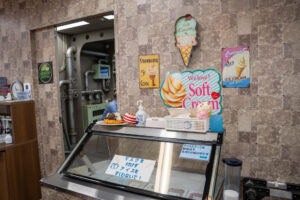 無料のランチとアイスクリーム 自販機飲料は50円で提供されています