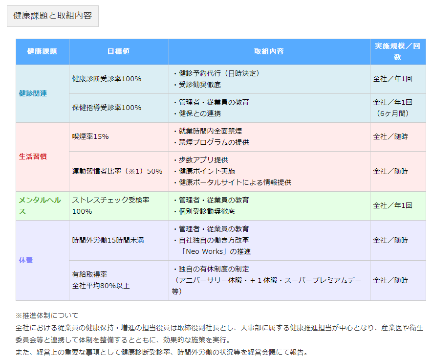 ここでお話させていただいた内容は、あくまで弊社の健康経営推進事例の一つです。