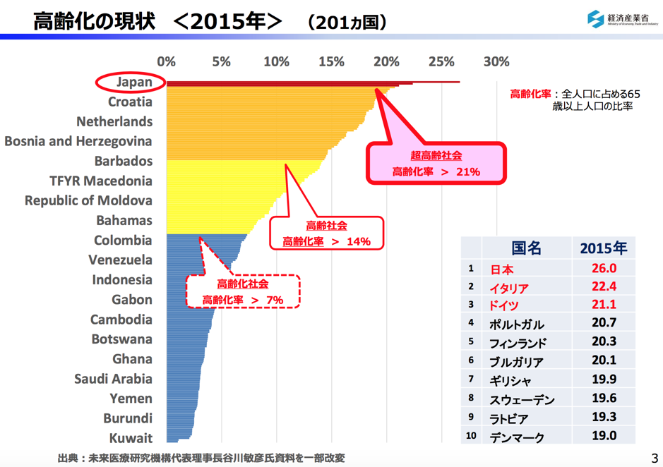 年々深刻になっている高齢化。中でも日本は世界に先駆けて「超高齢社会」に突入しています。
