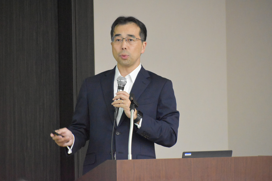 本セミナーの第1部では、経済産業省ヘルスケア産業課長の西川氏が、生涯現役社会に向けての取組みや、最近の「健康経営」に関するトレンドについて語りました。