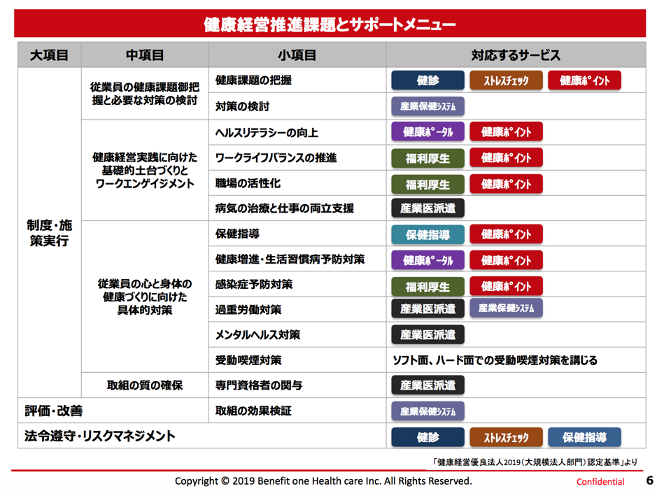 これら要望に対応するために健康経営をスムーズに実践するためのオンラインガイドサービスを開始予定であることを明かしました。