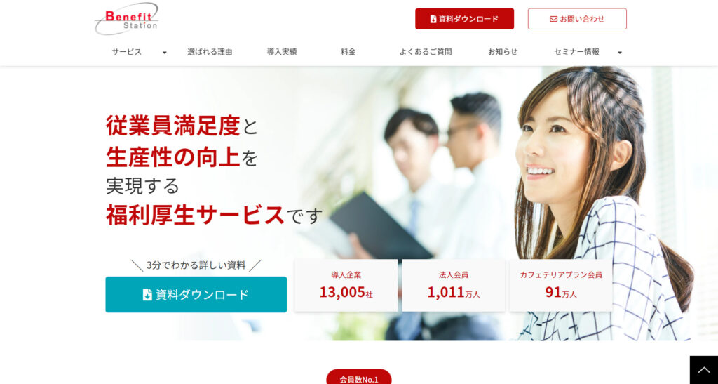 ベネフィット・ステーションは、福利厚生代行サービスの中で最大の会員数1011万人に利用されているサービスです。