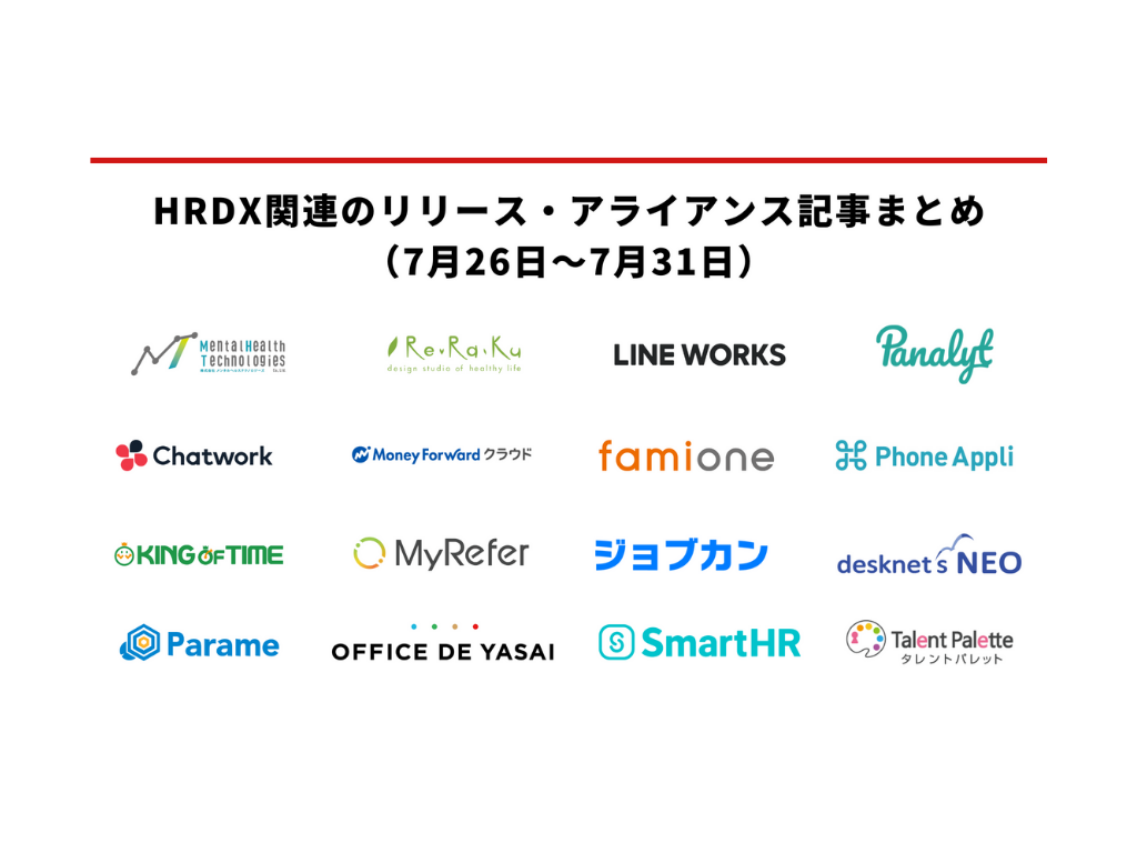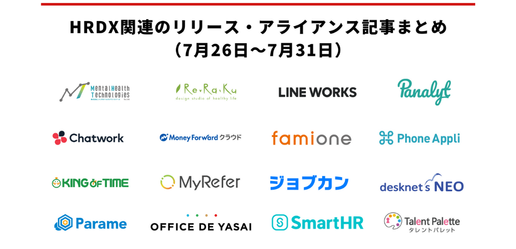 HRDX関連のリリース・アライアンス記事まとめ(7月26日~7月31日)
