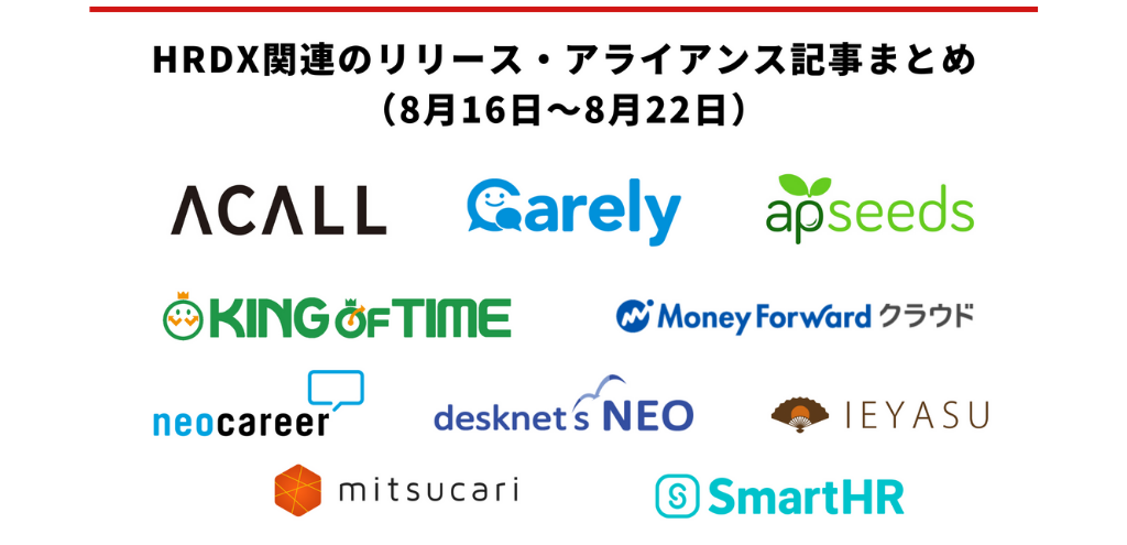 HRDX関連のリリース・アライアンス記事まとめ(8月16日~8月22日)
