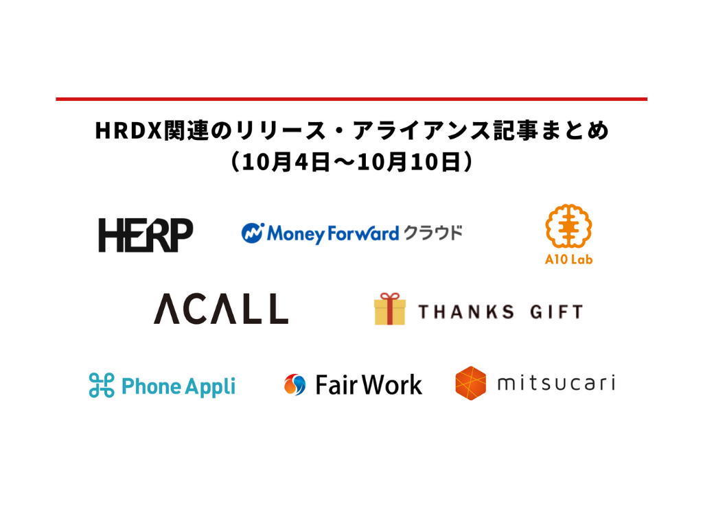 HRDX関連のリリース・アライアンス記事まとめ(10月4日~10月10日)