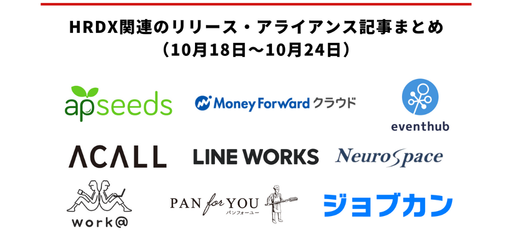 HRDX関連のリリース・アライアンス記事まとめ(10月18日~10月24日)