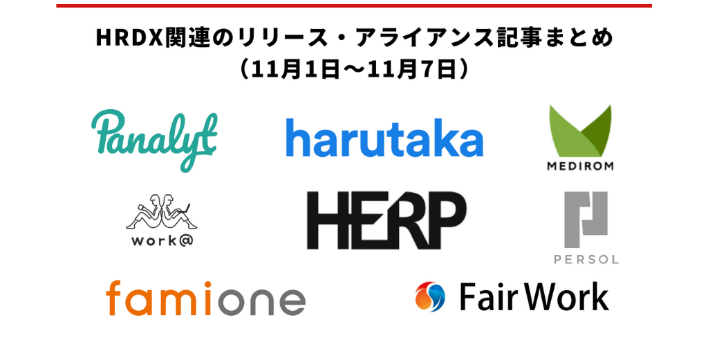 HRDX関連のリリース・アライアンス記事まとめ(11月1日~11月7日)