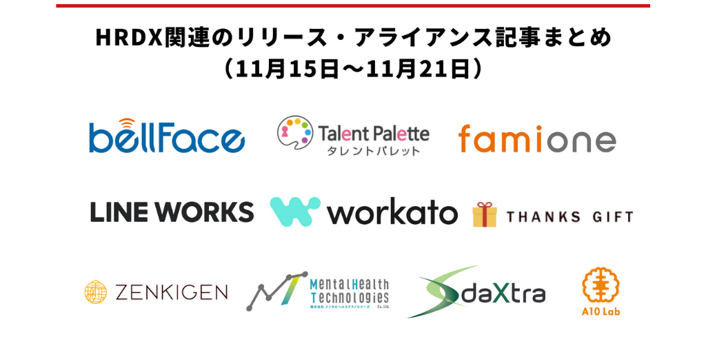 HRDX関連のリリース・アライアンス記事まとめ(11月15日~11月21日)