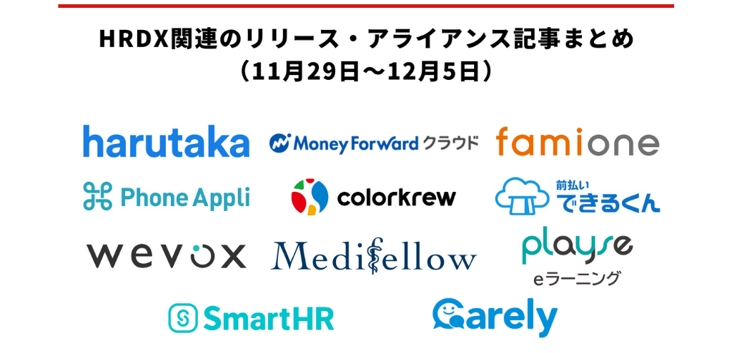 HRDX関連のリリース・アライアンス記事まとめ(11月29日~12月5日)