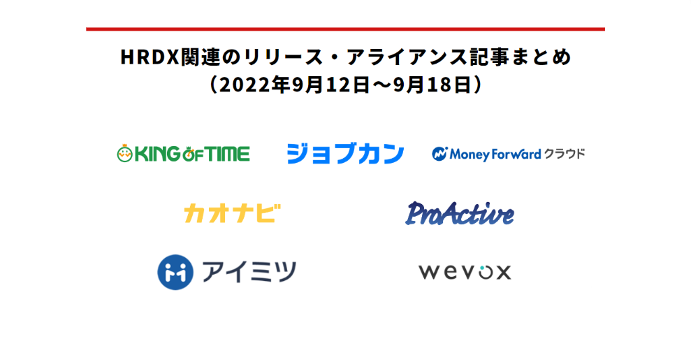 HRDX関連のリリース・アライアンス記事まとめ(2022年9月12日~9月18日)