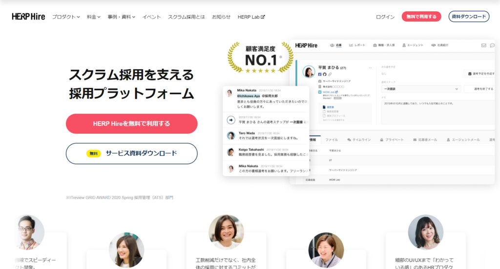 スクラム採用を実現するプラットフォームです。採用活動にまつわる情報を即時に集約し、複数の求人媒体利用の場合も、一画面で全状況を把握できるため非常に効率の良い採用活動を行うことができます。また、SlackやChatworkなどのビジネスチャットツールとも連携されているため、HERP hire内で採用情報を更新すれば、瞬時に連携され、全社員が採用状況を把握できます。全社的に採用活動を行うためには最適のシステムです。
