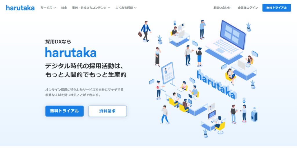 harutaka(ハルタカ)は、時間や場所に関係なく採用活動ができるWEB面接サービスです。