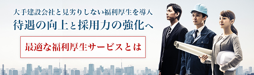 大手企業でさえ人材確保が難しいと言われる中、中小企業が他のライバル企業に勝つためには、福利厚生を大手建設業と見劣りしない水準に整備することが一つです。