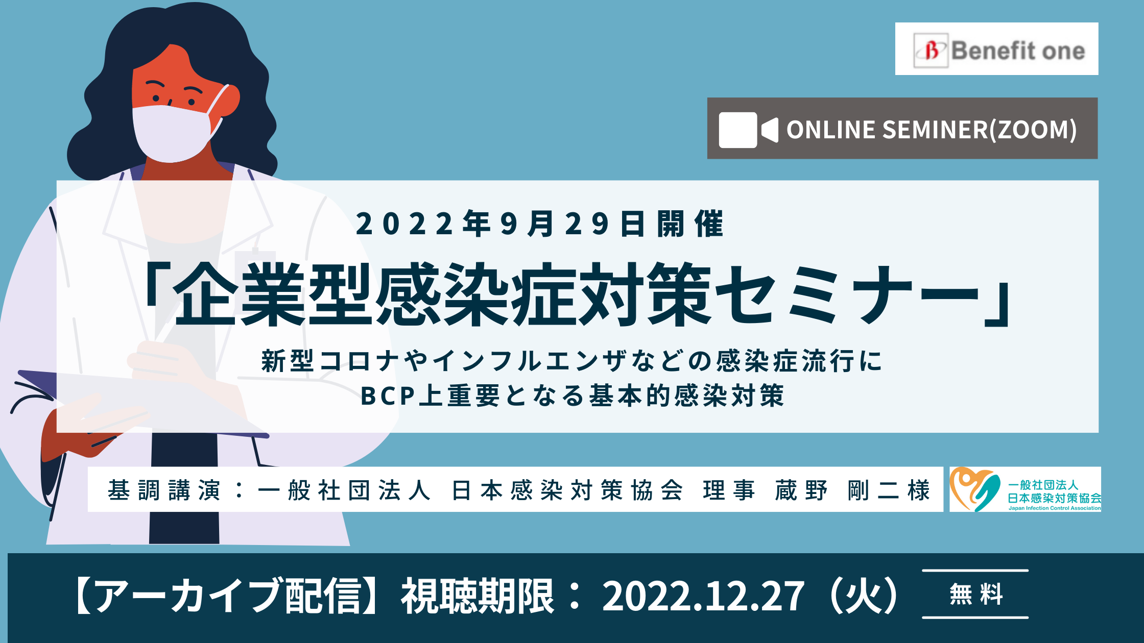 【アーカイブ配信】「企業型感染症対策」セミナー ~新型コロナやインフルエンザなどの感染症流行にBCP上重要となる基本的感染対策~