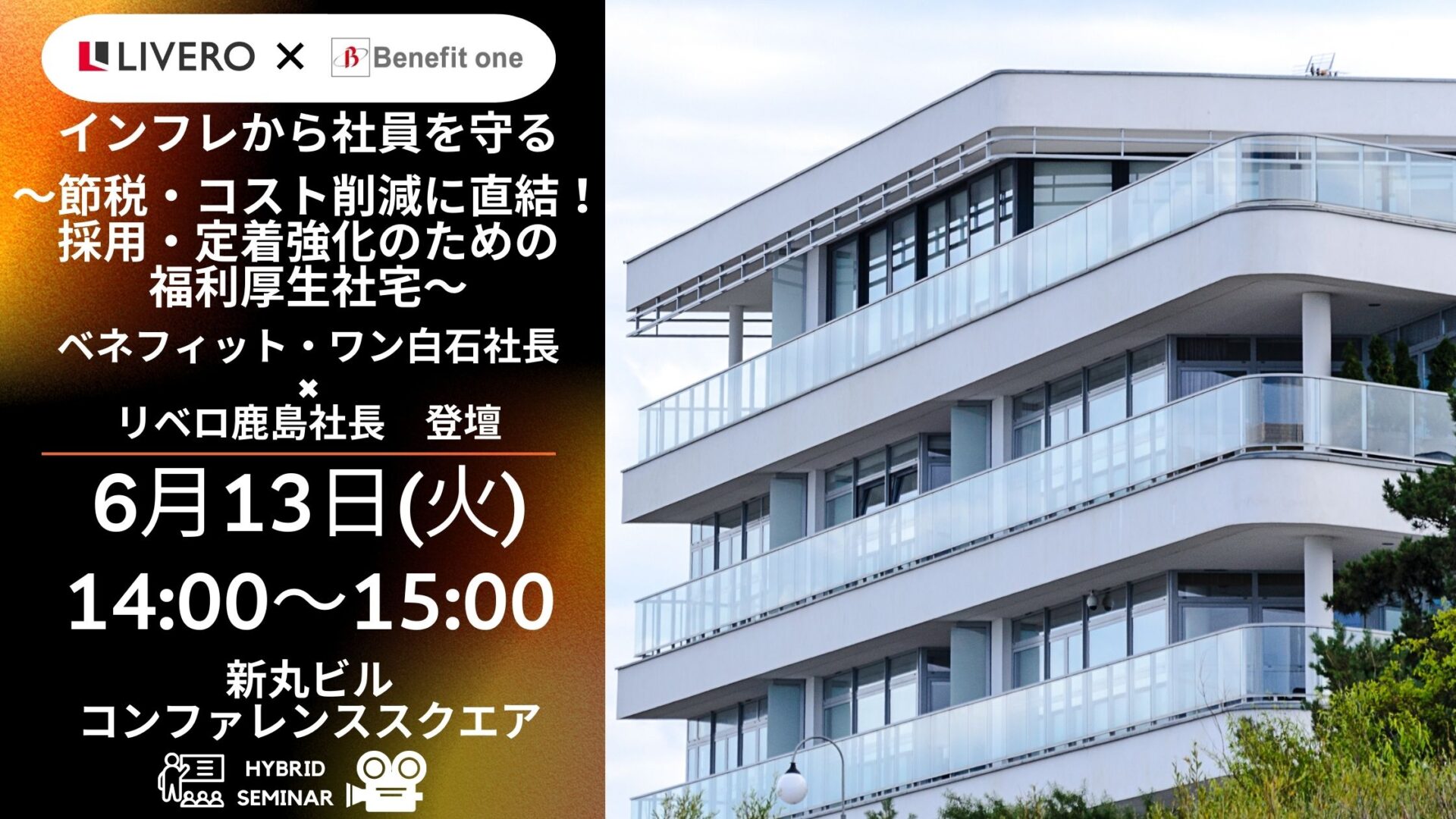 インフレから企業と従業員を守る ~節税・コスト削減に直結!採用・定着強化のための福利厚生社宅~ ベネフィット・ワン白石社長 × リベロ鹿島社長 登壇