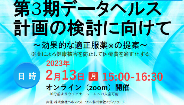 第3期データヘルス計画の検討に向けて ~効果的な適正服薬※の提案~ ※薬による健康被害を防止して医療費を適正化する