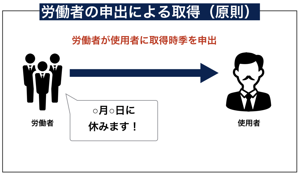 年次有給休暇の基本的なルールは、労働者が使用者(雇い主)に対して「○月×日に休みます」と申し出ることによってその権利を使うことが出来るというのがこれまででした。